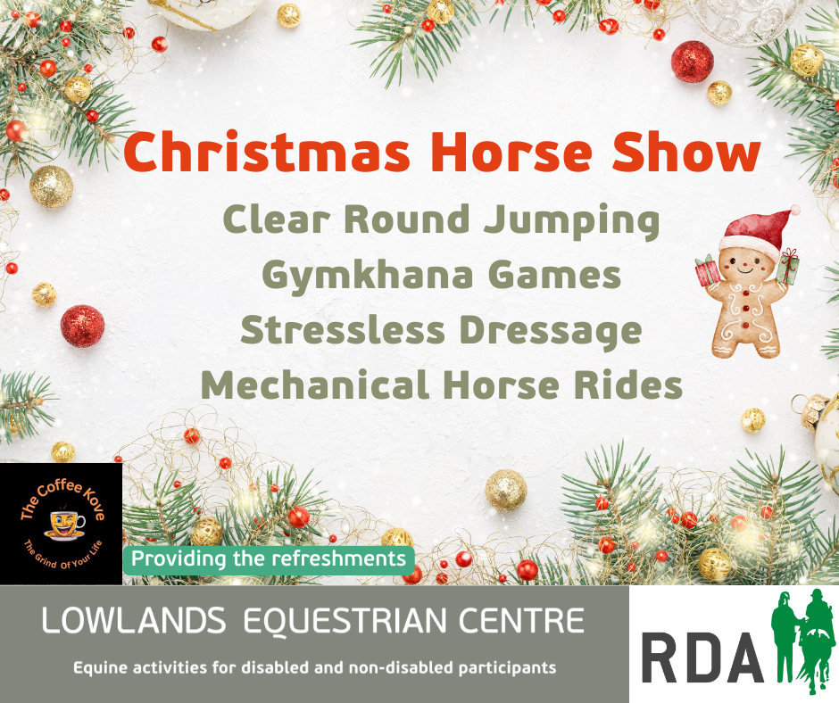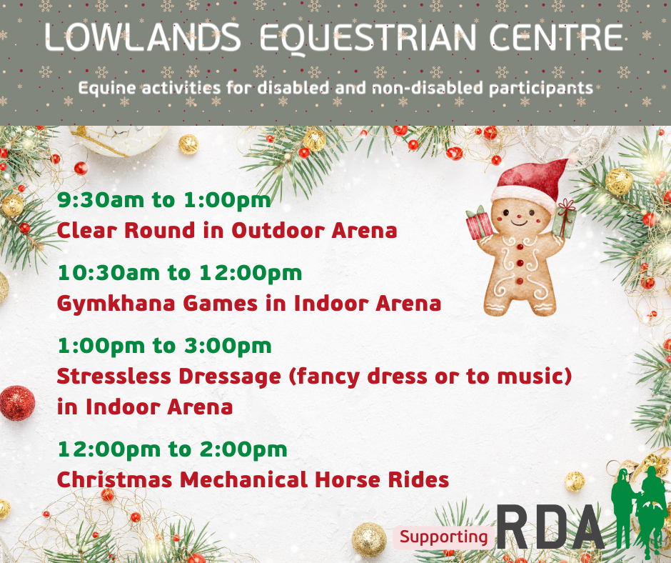 Riders can choose to ride along to a "Christmas" themed song or dressed up in a Christmas outfit. The dressage will take place in our Indoor Arena, warm up outdoor in the 20m x 40m dedicated space.